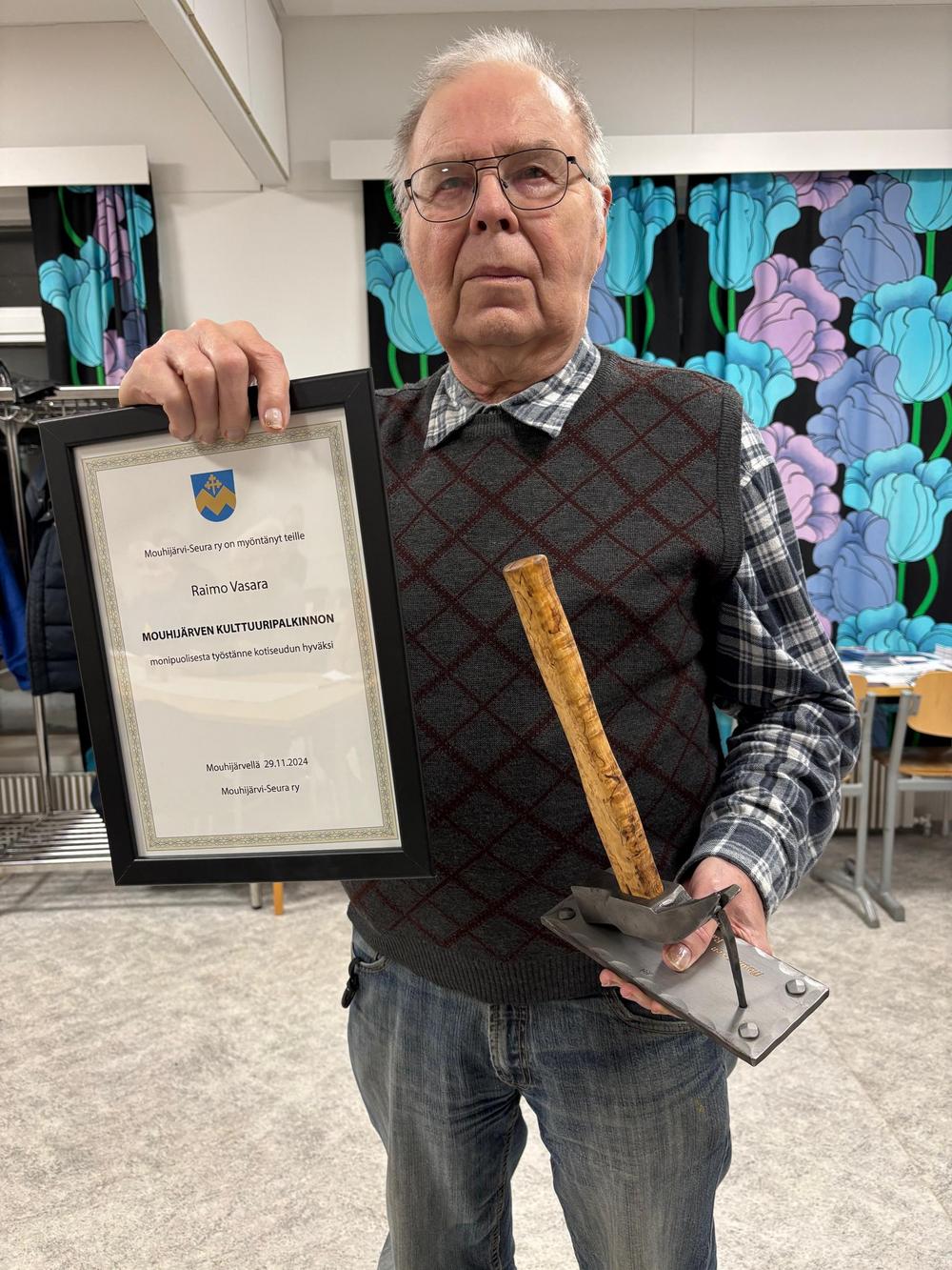 Mouhijärvi-Seura on tänä vuonna myöntänyt kulttuuripalkinnon Raimo Vasaran ansiokkaasta työstään Mouhijärven historioitsija vaalimisessa. Vasara on vuosien ajan tutkinut ja dokumentoinut paikkakunnan menneisyyttä.